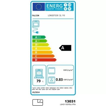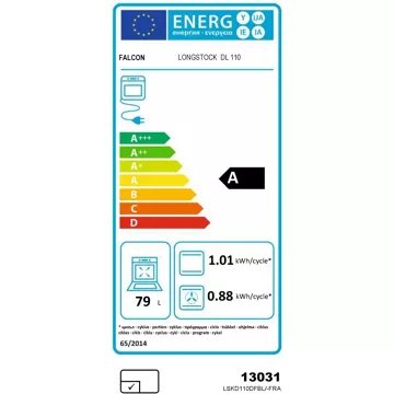 • Valeurs du label énergie : Label énergie A, Consommation en convection naturelle 0,88 kW, Consommation en chaleur tournante 0,83 kW