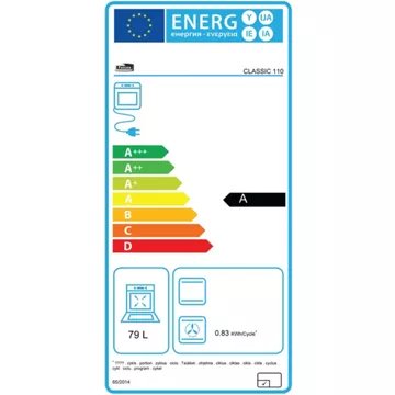 - Valeurs du label énergie : Label énergie A, Consommation en convection naturelle 0,83 kW, Consommation en chaleur tournante 0,83 kW