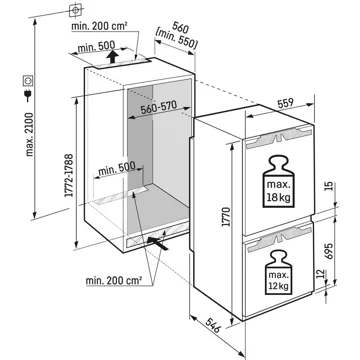 - Dimensions d’encastrement l x h x p : 56 x 177.2 x 55 cm