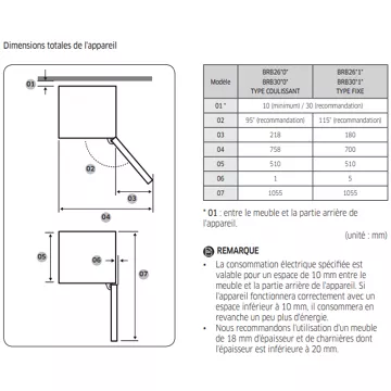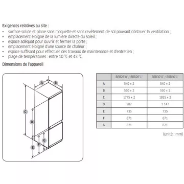 - Installation : porte sans débord, le réfrigérateur peut être installé contre le mur