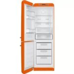 Réfrigérateur congélateur pose libre, volume total 331 L , réfrigérateur 234 L air ventilé, congélateur 97 L no frost, zone extra fresh 0°C, compartiment congélation rapide, éclairage LED, niveau sonore 37 dB, classe A+++, design rétro, orange