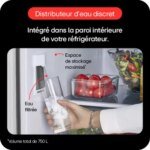 Avec son distributeur d’eau subtilement dissimulé à l’intérieur du réfrigérateur, celui-ci conserve son design extérieur minimaliste et premium pour sublimer votre cuisine. Bénéficiez à tout moment d’une eau filtrée facilement accessible et conservez l’intégralité de la capacité de stockage de votre réfrigérateur. Avec ses 750 litres, ce produit très grande capacité saura accueillir tous vos mets favoris.