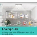 - Froid du réfrigérateur : le froid ventilé permet une répartition du froid de manière homogène et un rangement libre, sans contrainte, des aliments dans le réfrigérateur