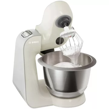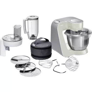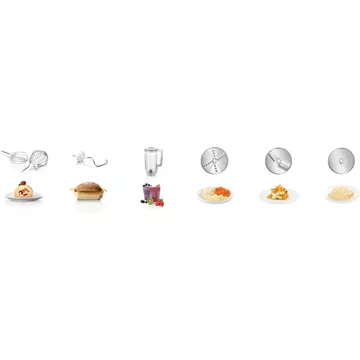Le robot BOSCH MUM58L20 vous offre de nombreux accessoires très pratiques. Ainsi, il est doté d’un crochet pétrisseur pour pétrir les pâtes lourdes comme celles à pain ou à pizza. Il possède un fouet pour mélanger les pâtes feuilletées, sablées et brisées, mais aussi un fouet pour battre les blancs en neige ou la crème. Tous ces éléments sont en inox.