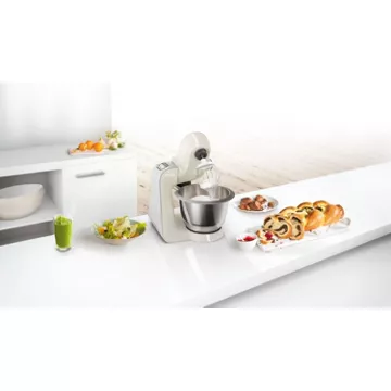 Le BOSCH MUM58L20 vous offre une puissance de 1 000 watts que vous pouvez régler grâce à ses 7 vitesses et à sa fonction pulse. Grâce à son régulateur intelligent de malaxage, il maintient une vitesse constante, même avec des pâtes lourdes ou de nombreux ingrédients à gérer.
