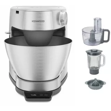 - Accessoires : batteur, blender verre, couvercle anti-projections, crochet pétrisseur, disque(s) éminceur, disque(s) râpeur, fouet à fils, presse-agrumes, balance