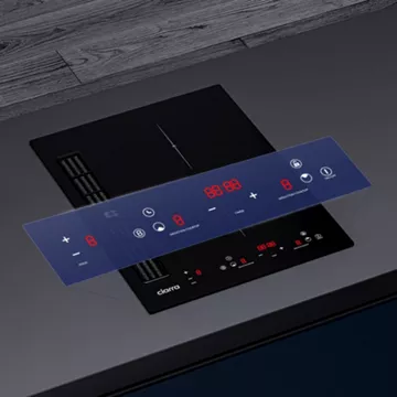 - Interconnexion table/hotte : Oui. Une fois la table de cuisson active, l’éclairage de la hotte compatible s’enclenche et règle la puissance d’aspiration en automatique.