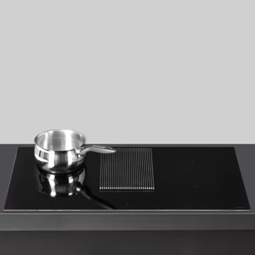 - Type de table : induction avec hotte intégrée, solution pratique et esthétique pour combiner la table de cuisson et la hotte. Elle nécessite un encastrement spécifique (voir infos dimensions).