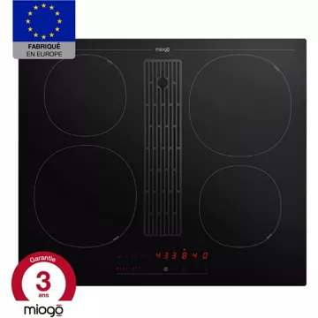- Type de table : induction avec hotte intégrée, solution pratique et esthétique pour combiner la table de cuisson et la hotte. Elle nécessite un encastrement spécifique (voir infos dimensions).