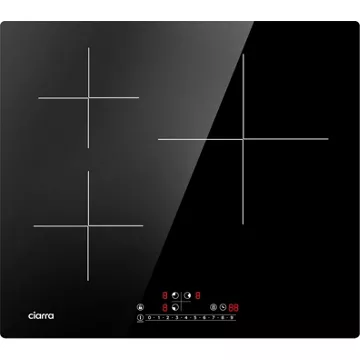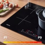 - Sécurités : arrêt automatique, coupure en cas de débordement, anti surchauffe, verrouillage du clavier, témoin de chaleur résiduelle, détection d’absence de récipient, détection de petits objets, témoin de mise sous tension