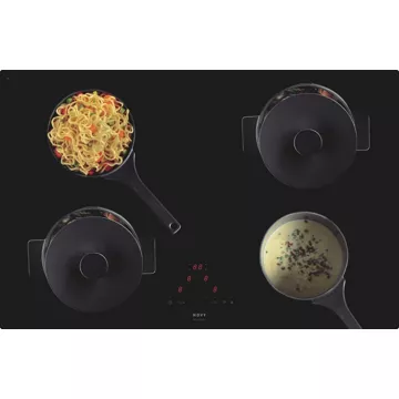 - Sécurités : arrêt automatique, coupure en cas de débordement, anti surchauffe, verrouillage du clavier, témoin de chaleur résiduelle, témoin de mise sous tension