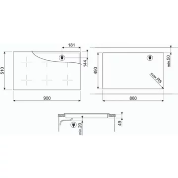 - LxHxP (encastrement) : 86 x 6.9 x 49 cm