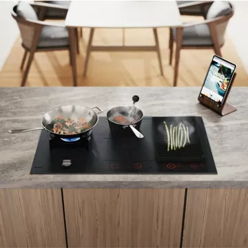 • Type de table : mixte gaz-induction, liberté d’utiliser différentes sources d’énergie pour une précision de cuisson et une montée rapide en température et fonctionnement même en cas de coupure électrique.