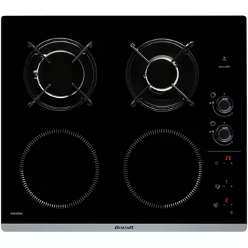 Équipée de 4 foyers, dont 2 dédiés à l’induction et 2 autres au gaz, la table mixte BPI6413BM de Brandt est conçue pour combiner les techniques de cuisson en fonction des besoins de chaque plat. Outre le côté traditionnel du gaz, permettant par exemple un mijotage parfait, elle offre une grande vitesse de cuisson grâce à ses foyers à induction.