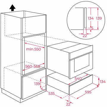 Le design du Tiroir Chauffant TEKA CP 150 GS est conçu pour s’intégrer harmonieusement dans tout type de cuisine, avec des options de couleurs telles que le Noir, Stone Grey et Infinity G1. Ses dimensions compactes (595 mm de largeur, 557 mm de profondeur et 140 mm de hauteur) et son poids net de 18 kg le rendent facile à installer dans l’espace dédié. Il est important de noter que la façade n’est pas comprise, permettant ainsi de choisir celle qui s’accorde le mieux avec votre cuisine. Sur le plan technique, ce modèle fonctionne sur une fréquence de 50-60 Hz et dispose d’une puissance nominale maximale de 420 W, assurant une montée en température rapide et efficace.